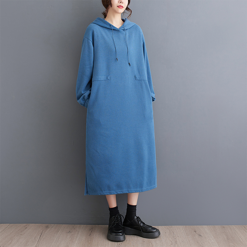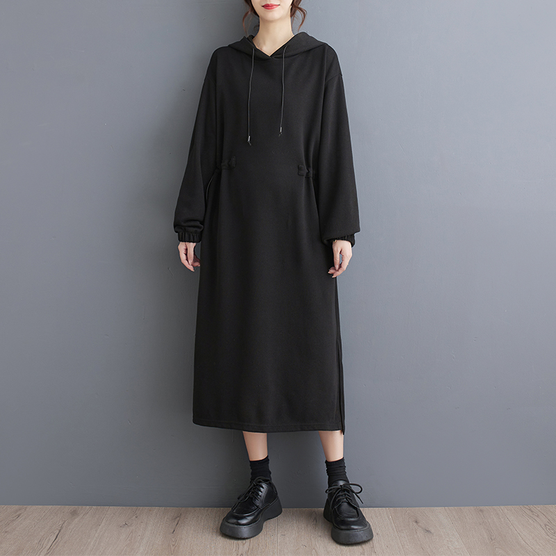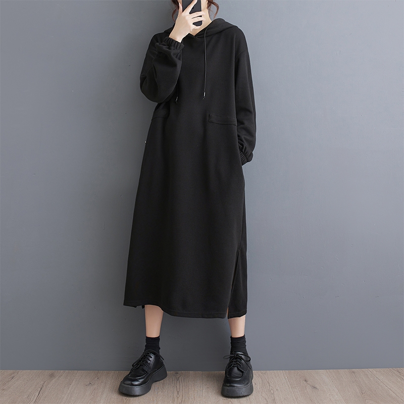 大码胖mm洋气连帽中长款过膝卫衣裙子秋冬宽松休闲减龄遮肉连衣裙
