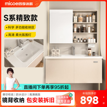四季沐歌一体浴室柜组合智能镜柜收纳简约卫生间洗漱台小户型盆柜
