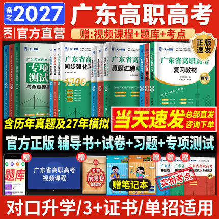 官方速发2027广东省高职高考复习教材3+证书广东春季高考高职高考复习资料历年真题模拟试卷语数英中职生对口升学单招考试资料
