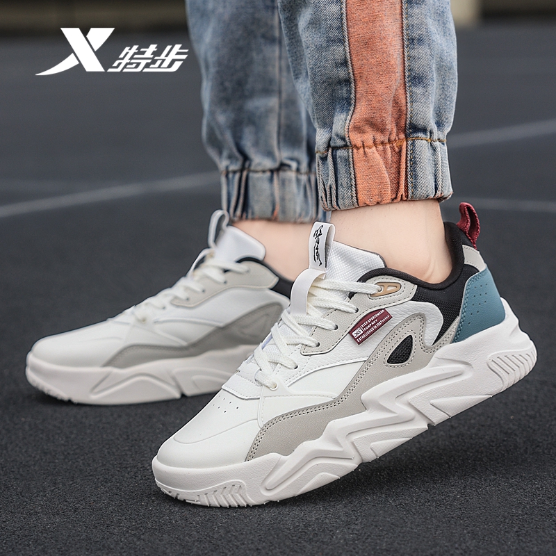 特步男鞋板鞋男秋季网面透气休闲鞋官方旗舰店正品皮面防水运动鞋