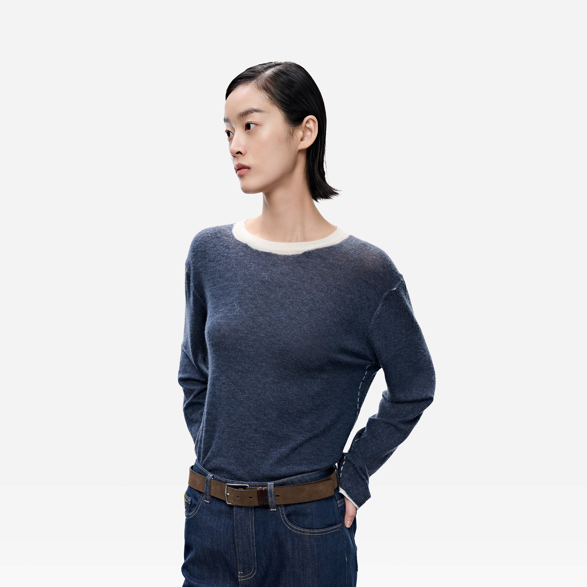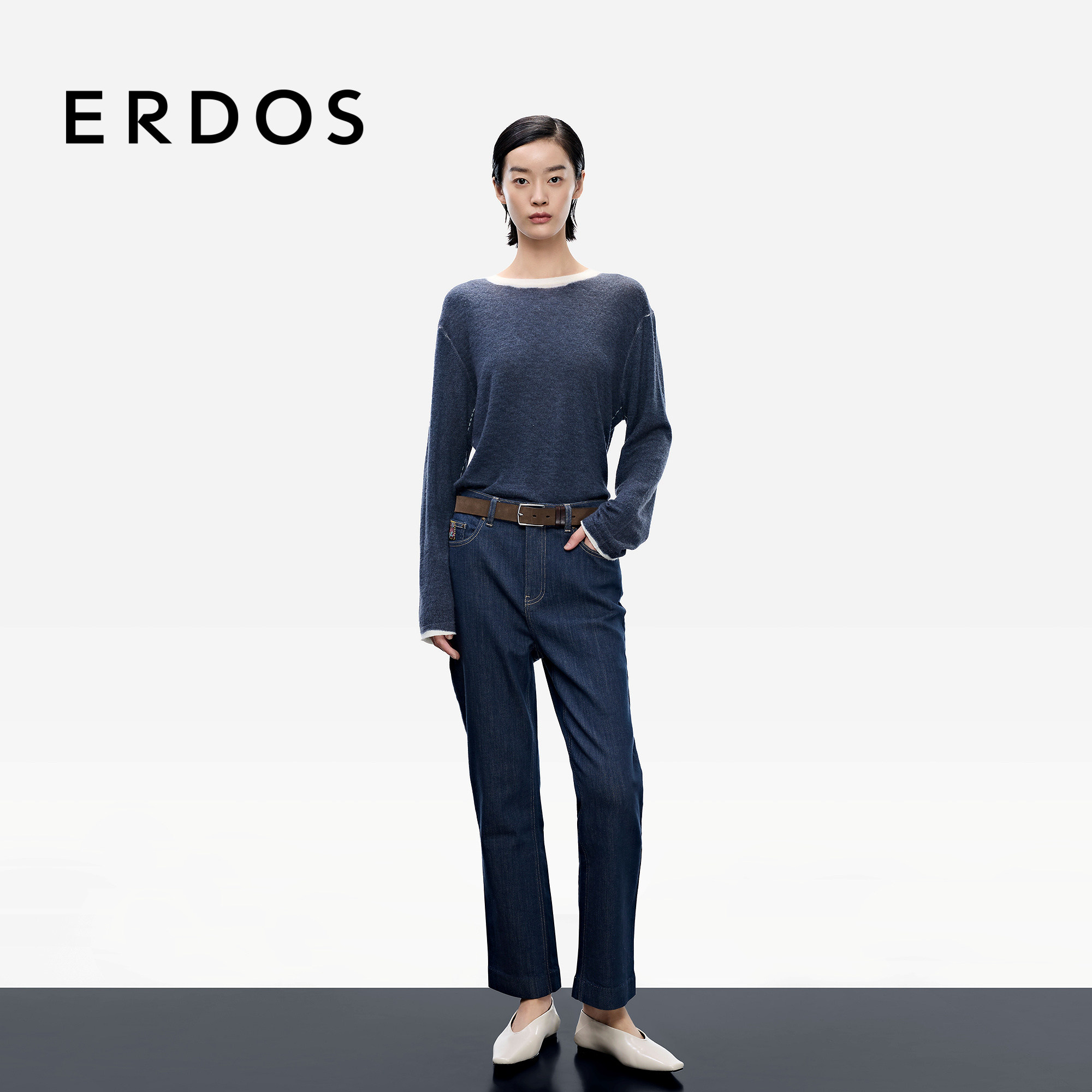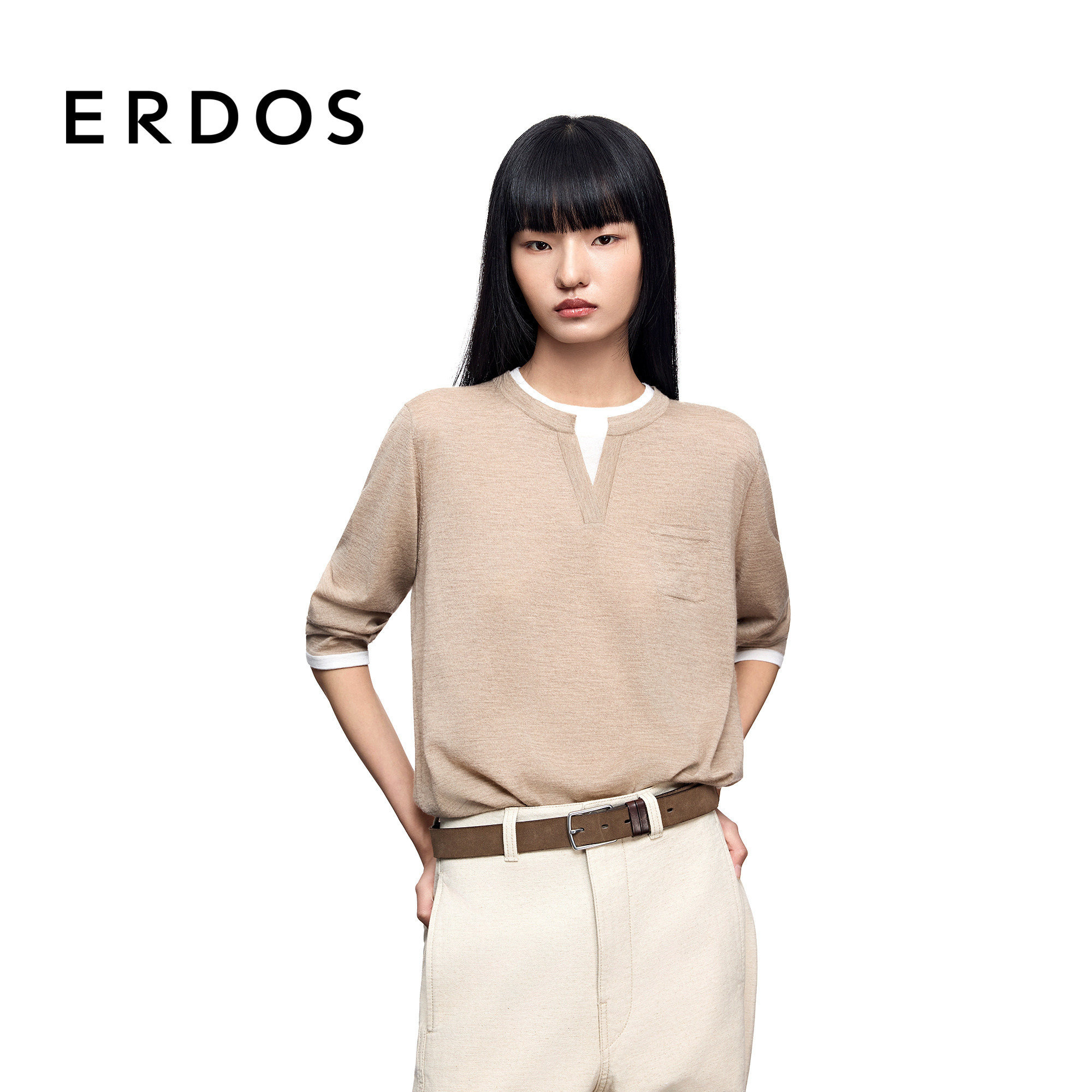 【精纺假两件羊绒衫】ERDOS 圆领宽松舒适针织T恤套衫25年秋新品