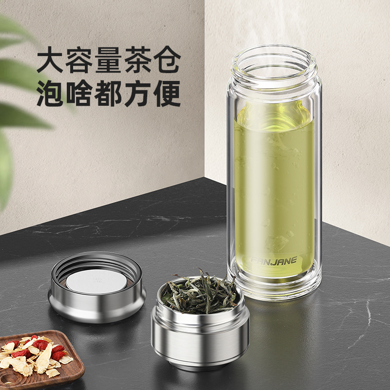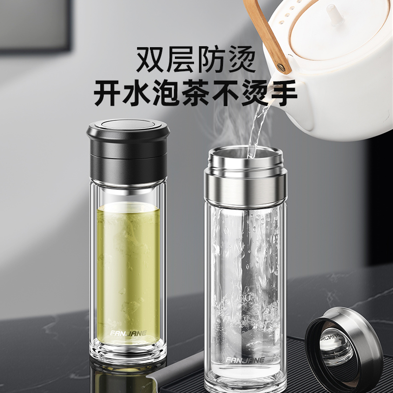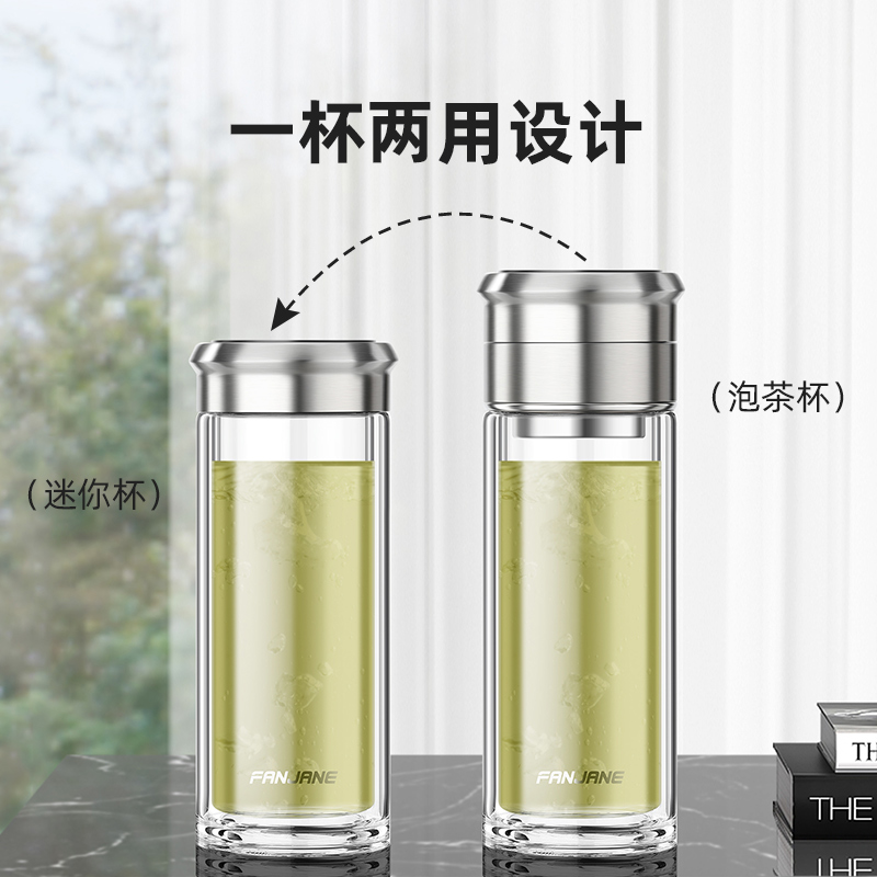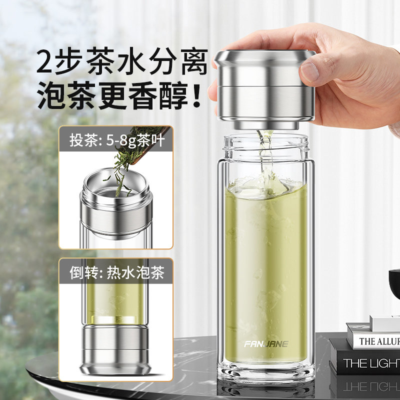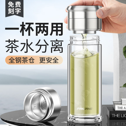 繁简茶水分离泡茶杯男女双层玻璃杯加厚个人专用旅行水杯户外杯子