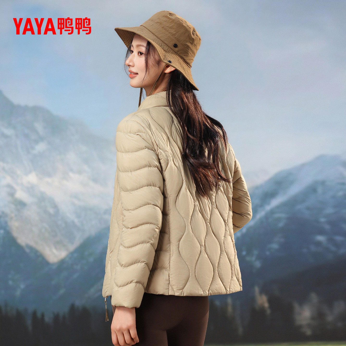 鸭鸭露营羽绒服女士2025年冬季百搭轻薄短款小立领百搭鸭绒外套J