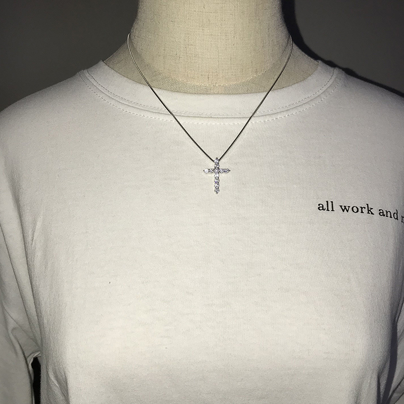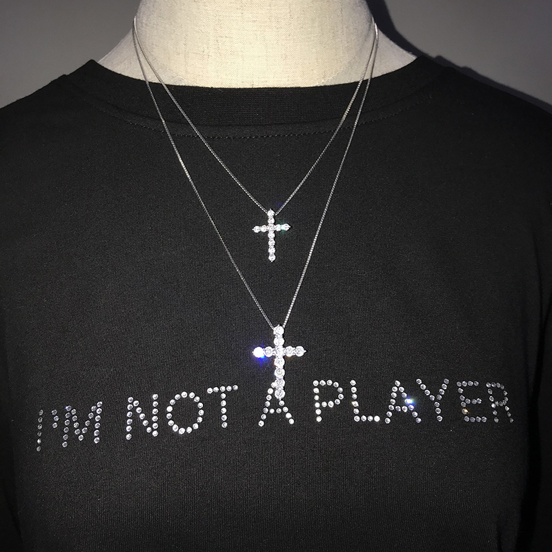 通体S925纯银十字架吊坠项链男女马思唯同款潮牌锁骨链hiphop嘻哈