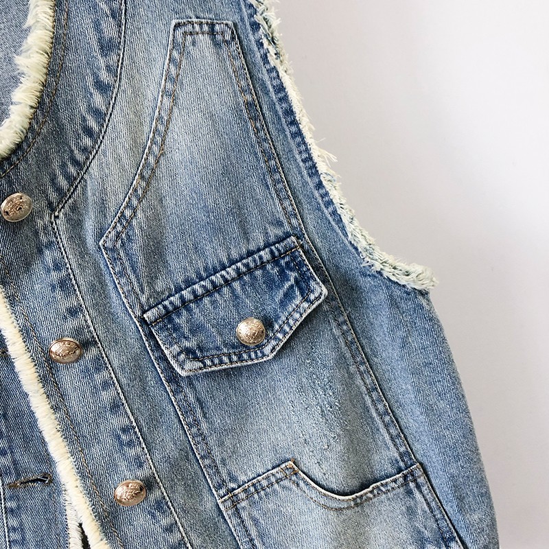 女童牛仔马甲童装春秋儿童无袖上衣法式小香风中大童毛边百搭背心