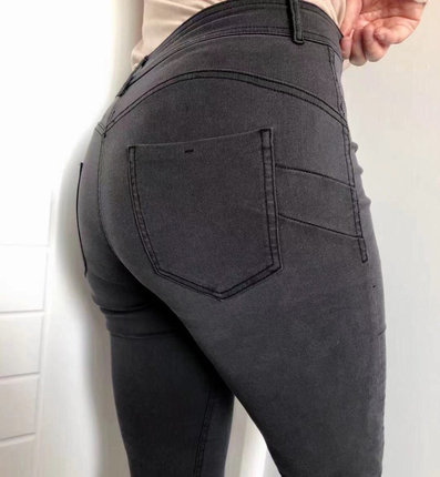 C家高腰提臀四面弹软牛仔裤烟灰色紧身小脚显瘦显高修身9分裤子女