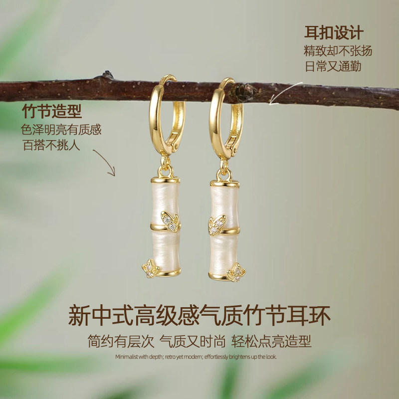 新中式金色竹节耳环女款轻奢高级