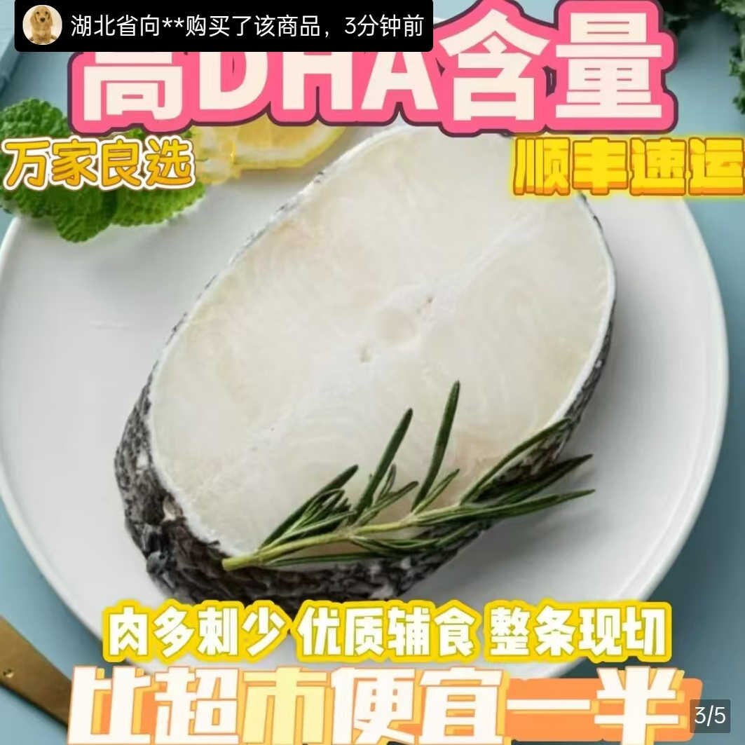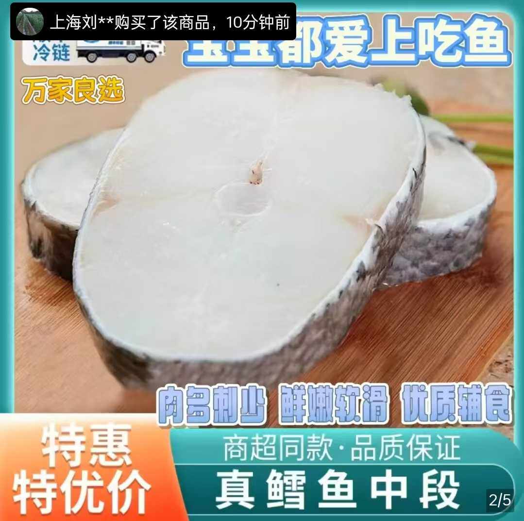 杨师傅食品俄罗斯鳕鱼片特级深海鳕鱼中段新鲜冷冻大块原切鳕鱼块
