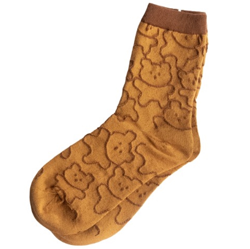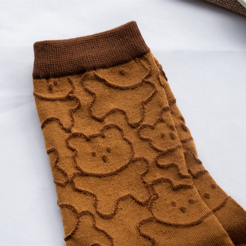 新款小熊袜子女中筒日系学院风暗花ins韩版可爱学生潮春秋纯棉袜