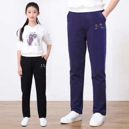 女童裤子直筒纯棉中大童运动休闲裤春秋款儿童长裤女学生春季外穿