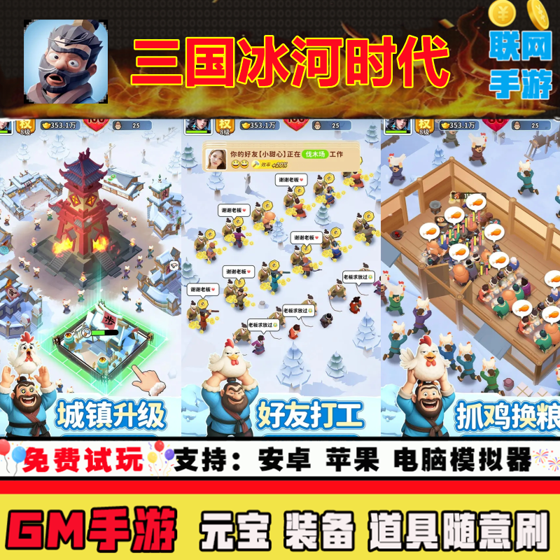 三国冰河时代手游无限GM后台道具元宝钻石内部号辅助折扣礼包兑换码破译免费版游戏安卓i os鸿蒙联网