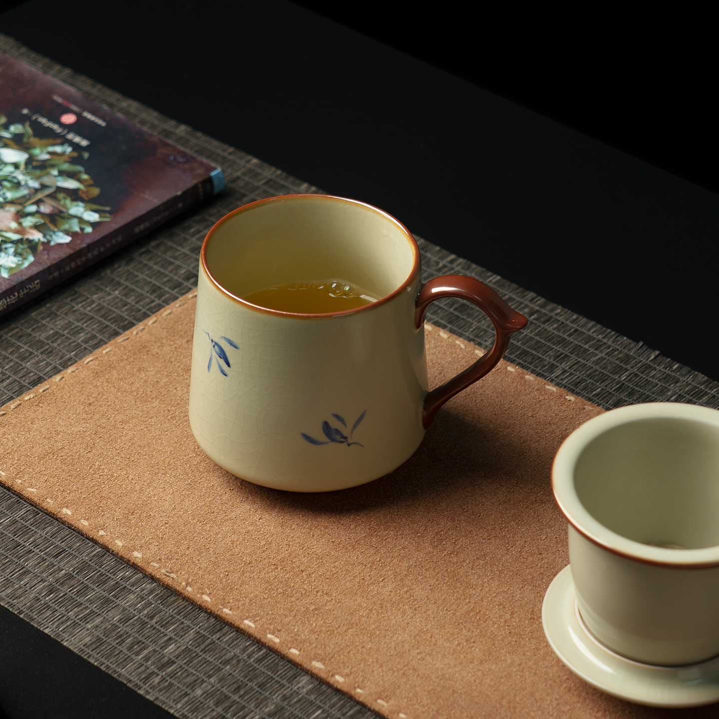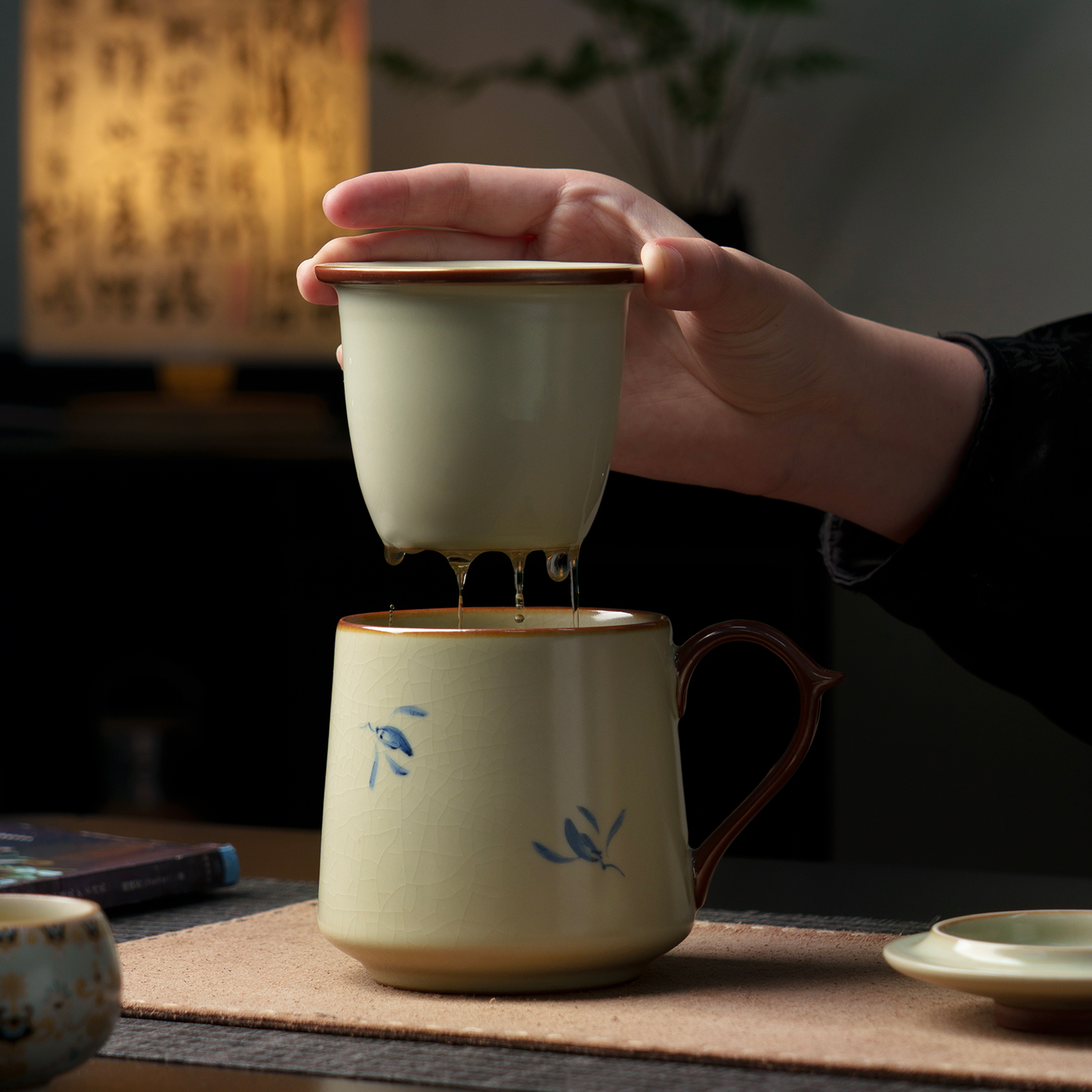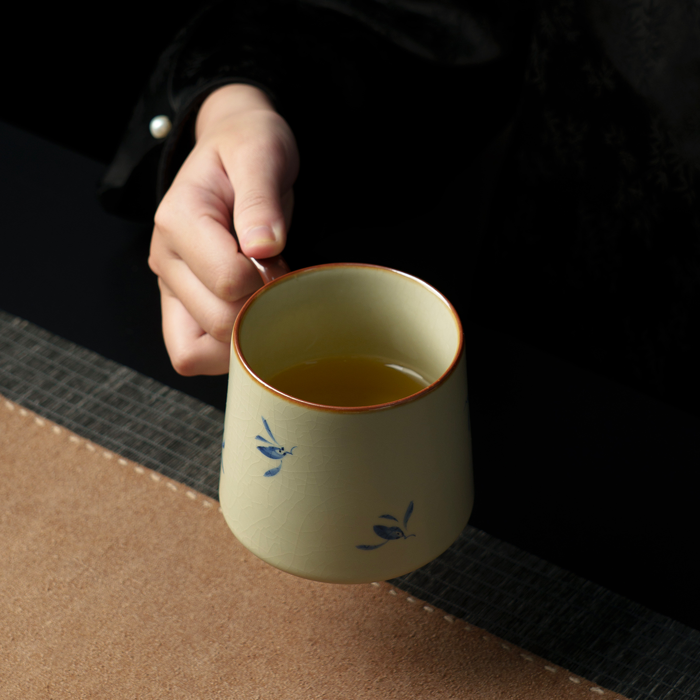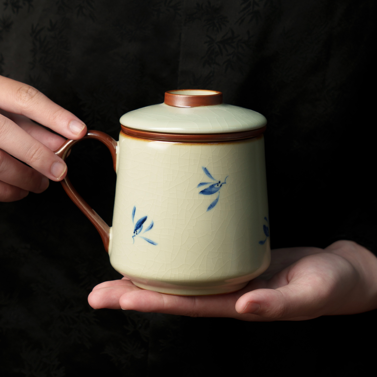 墨己中式秋水兰花手把办公杯家用汝窑办公杯个人大容量喝水杯茶具