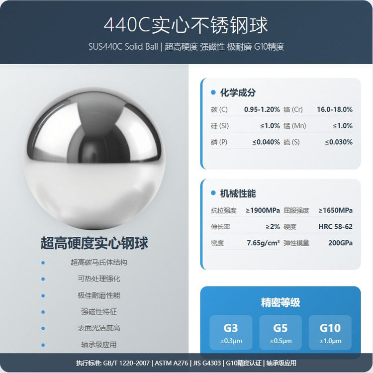 国标G10级440C不锈钢球0.5-95.25mm 9Cr18Mo高硬度不锈钢珠