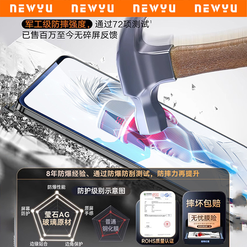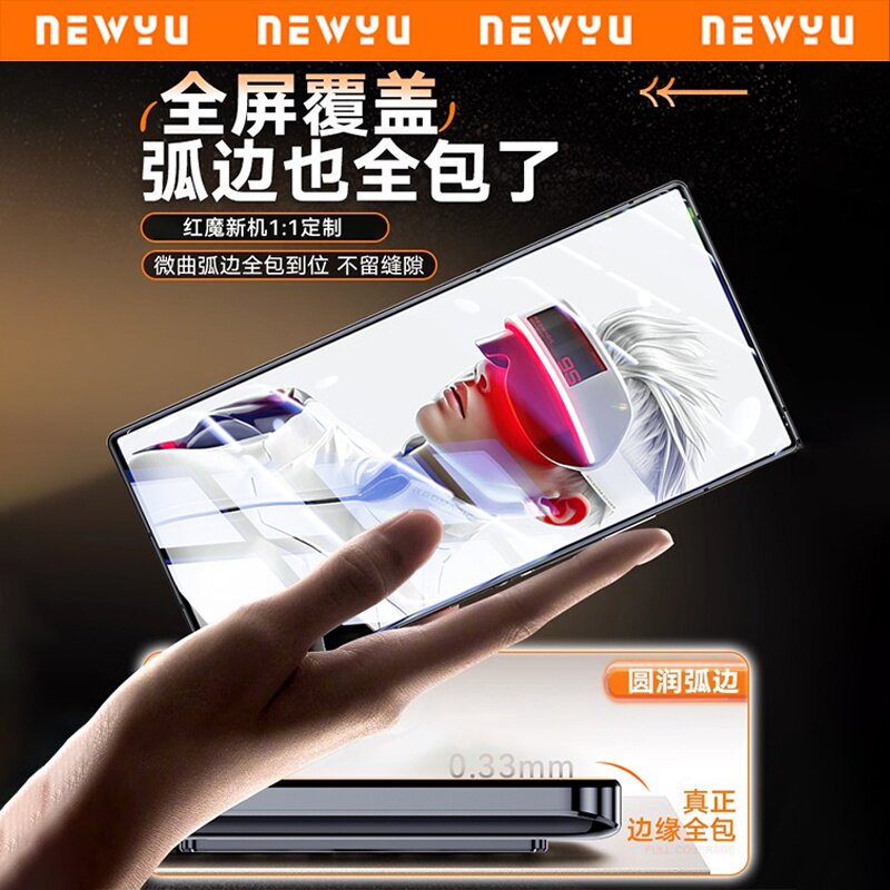 Newyu适用红魔9SPro钢化膜10Pro手机膜全屏红魔8S防摔电竞9Pro+十覆盖6R氘锋透明银翼版7Pro磨砂高清S水凝贴