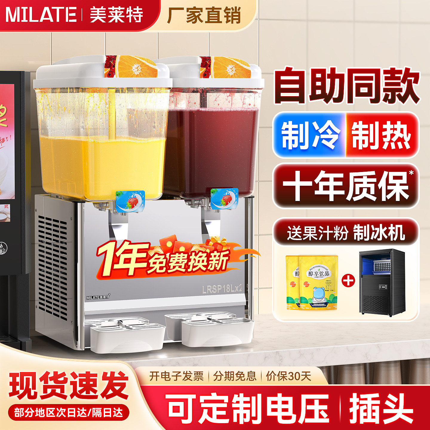 美莱特冷饮机商用双温豆浆奶茶机器自助冰镇酸梅汤果汁制冷饮料机