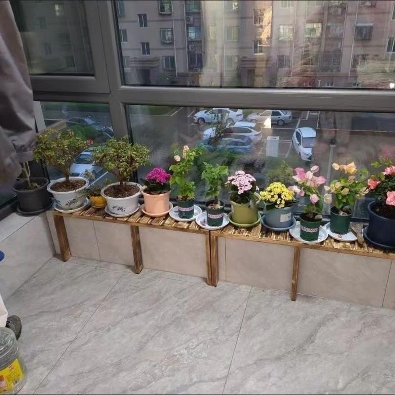 【定制】台面阳台架子台沿实木窄脚高低花盆花架加宽防腐落地窗台