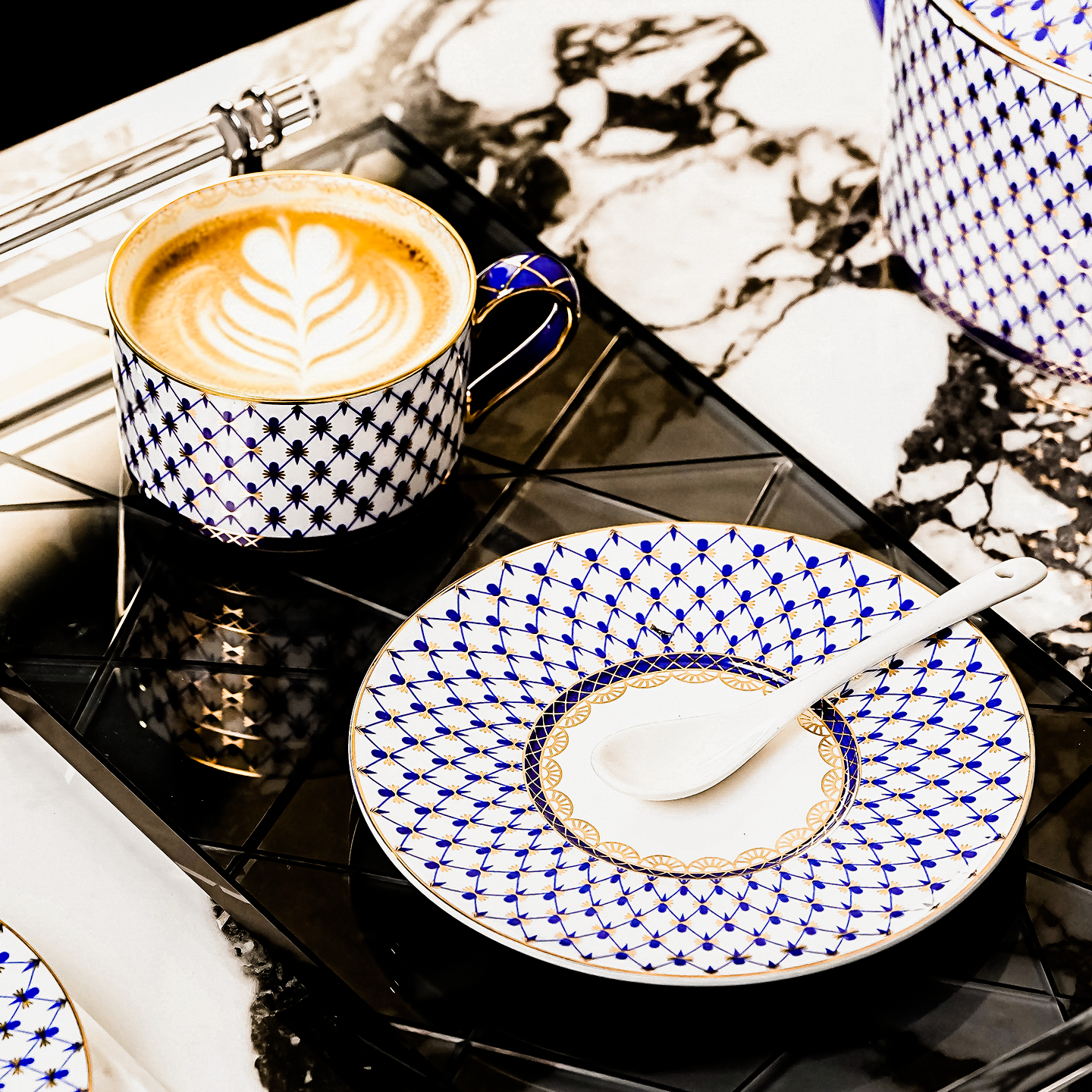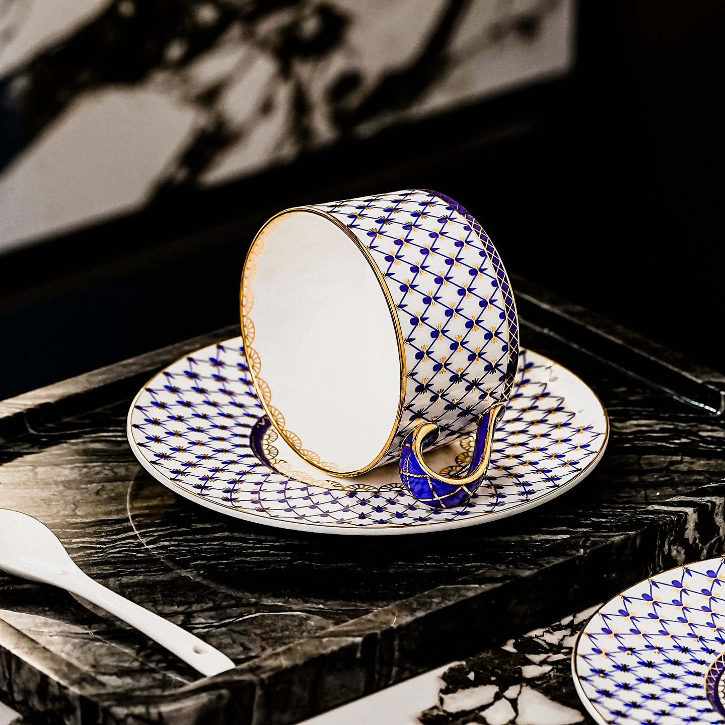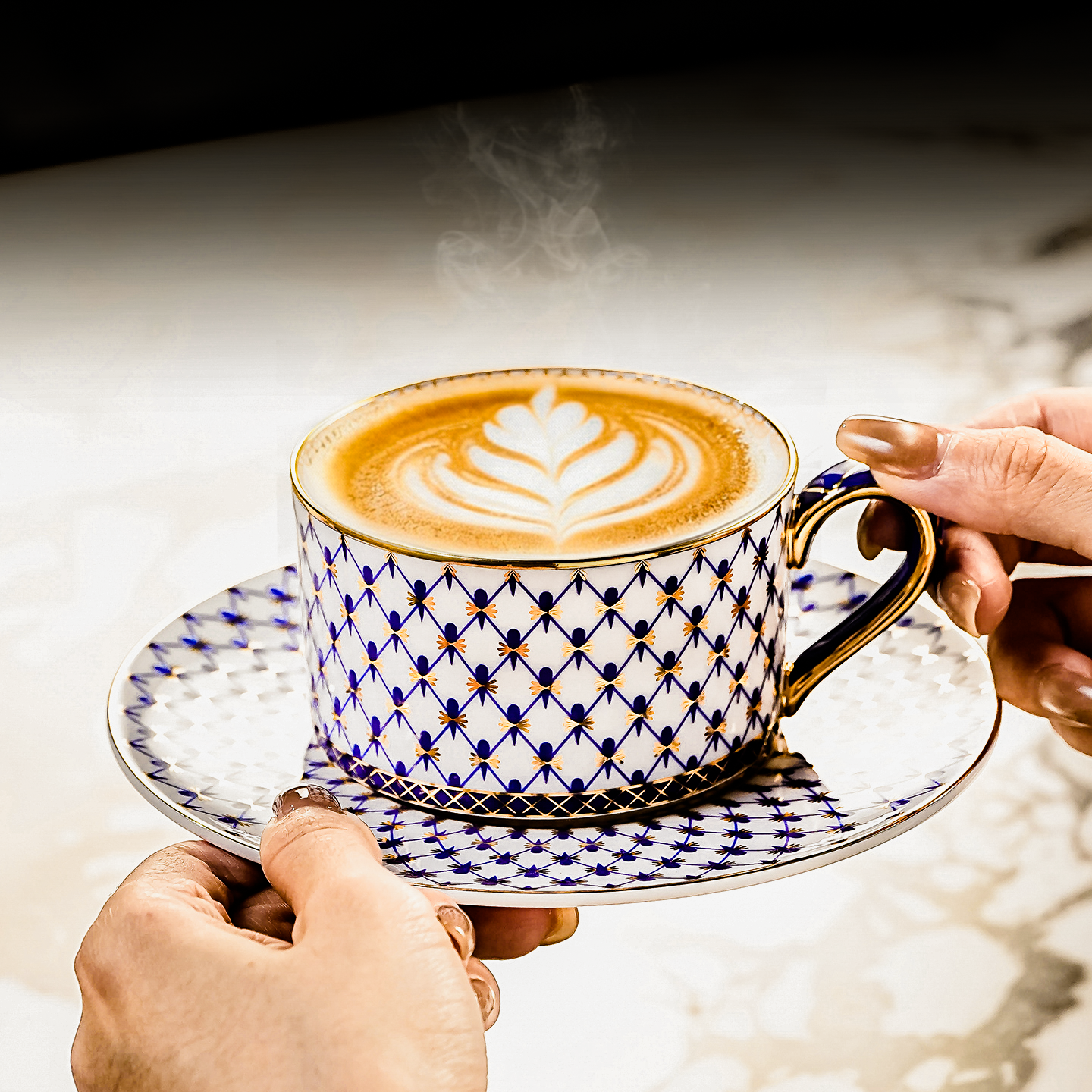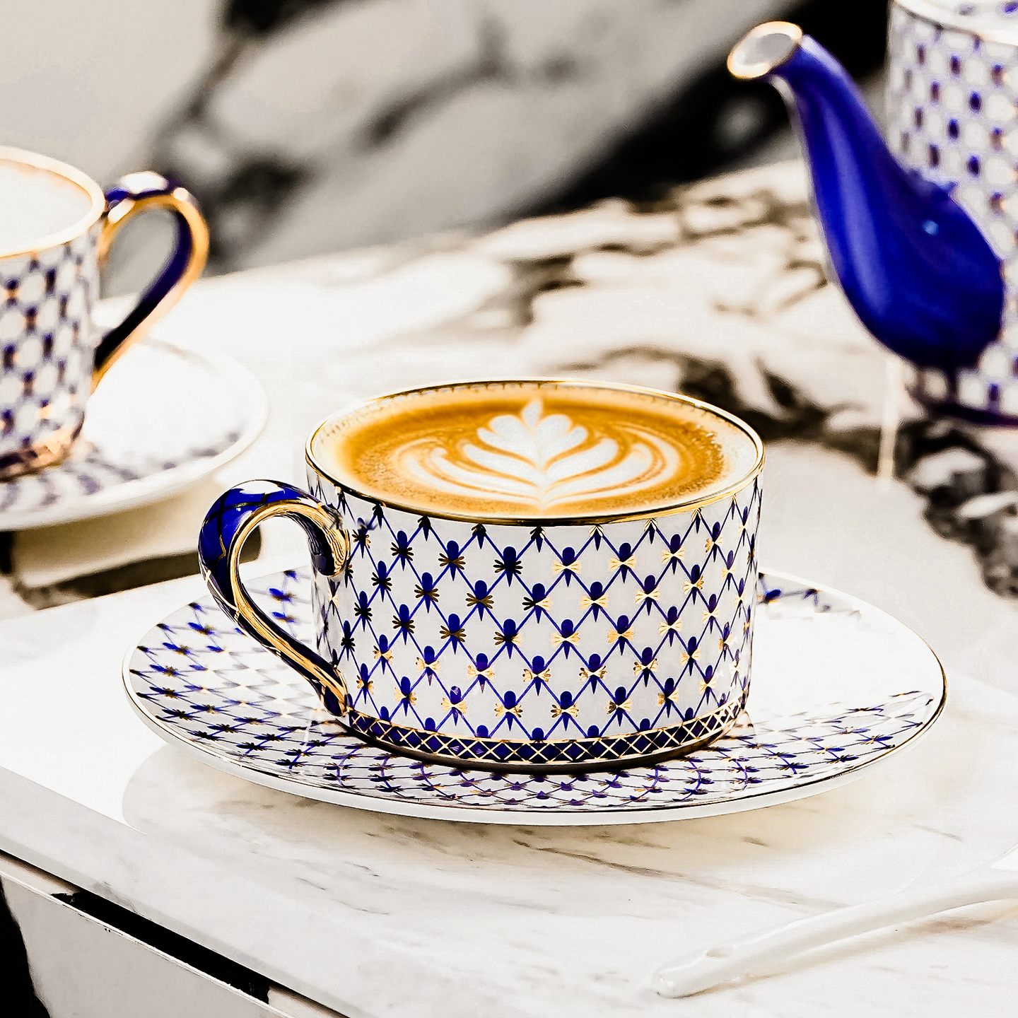 法式老钱风描金骨瓷咖啡杯碟套装