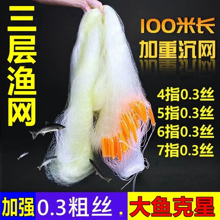 加粗0.3丝100米4指5指6指7指鱼网粘网三层沉网捕鱼黄丝草鱼大鱼网