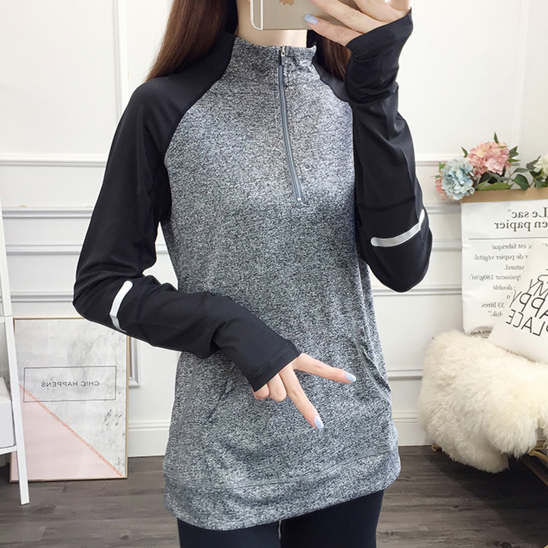户外运动长袖速干衣女春夏立领弹力透气跑步健身瑜伽服快干T恤衫