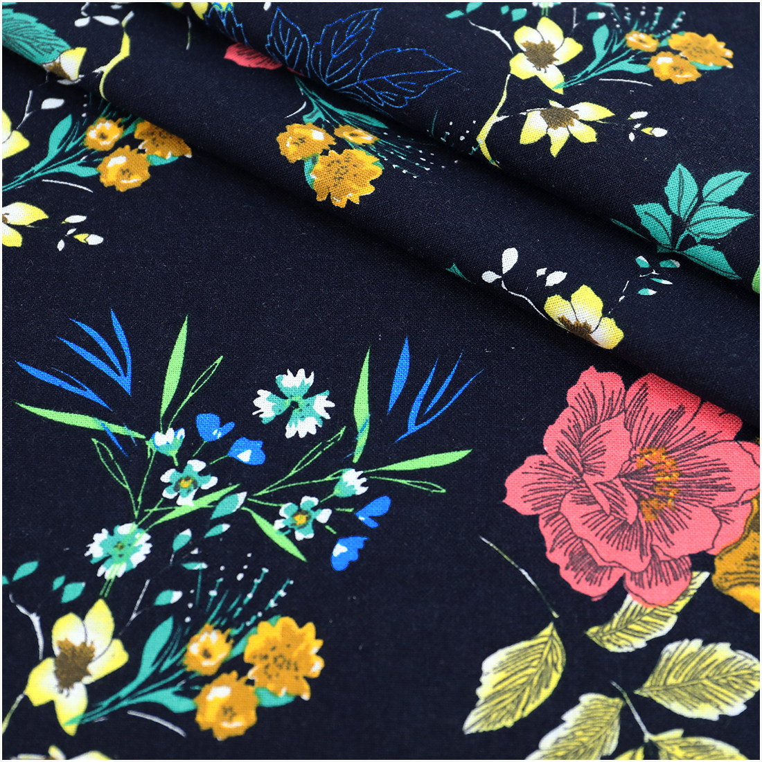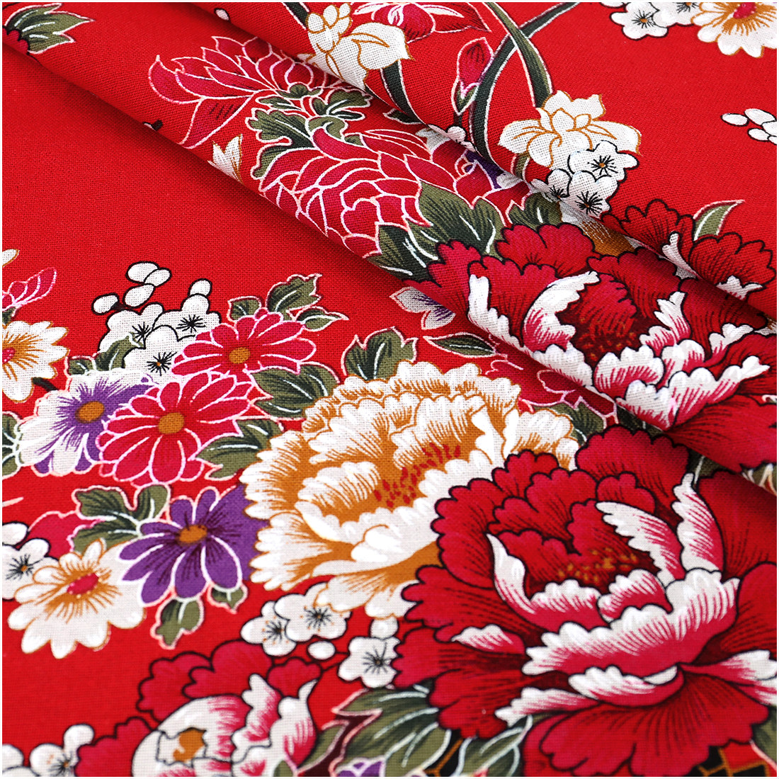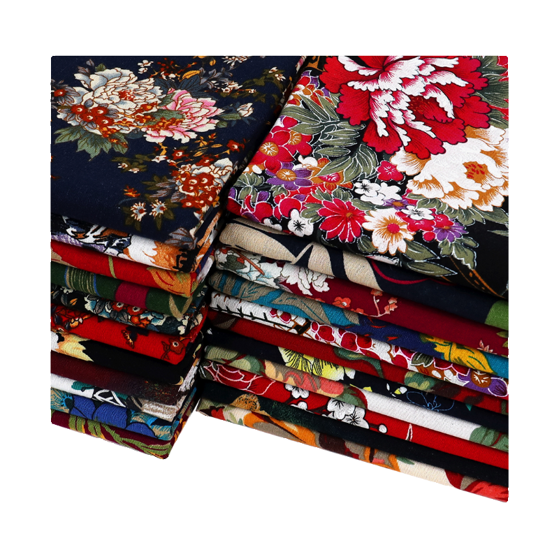 复古大花纯棉麻印花布料 手工唐装春夏连衣裙服装全棉面料