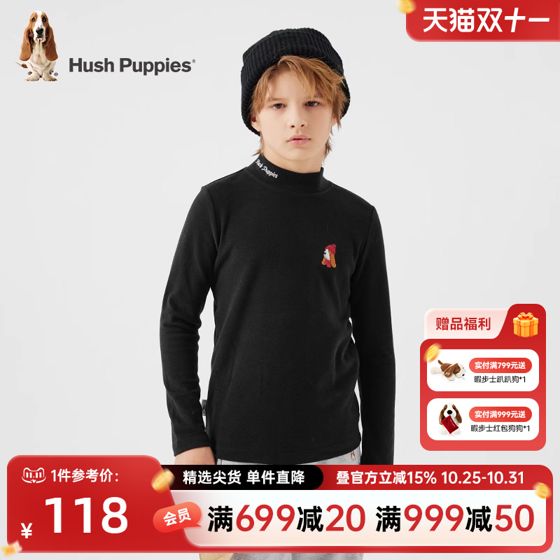 暇步士童装儿童打底衫春秋新款男童半高领T恤女宝宝德绒内搭t
