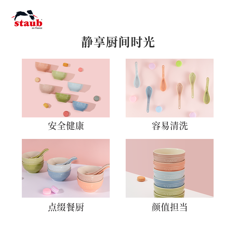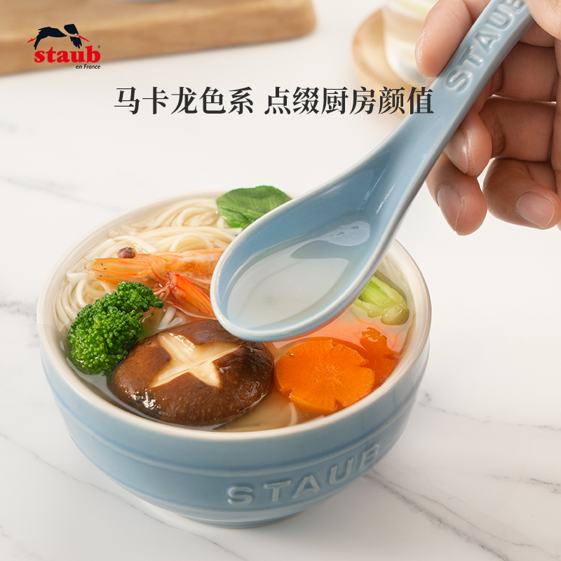 staub珐宝马卡龙色陶瓷米饭碗汤盘筷子勺杯子调味罐套装汤碗餐具