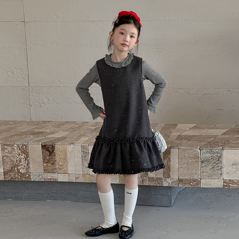 女童连衣裙秋冬2025新款洋气儿童小香风背心裙中大童公主裙两件套