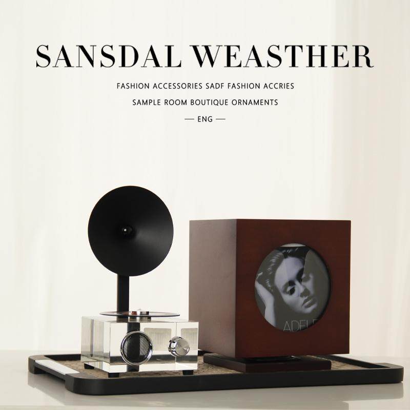 音乐主题道具黑胶唱片留声机样板房书房书桌书柜玄关飘窗装饰摆件