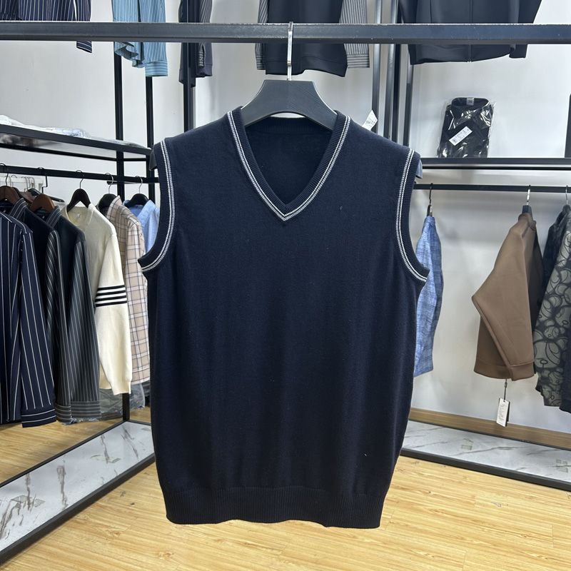 时尚V领针织修身套头打底衫秋季男士软糯亲肤休闲百搭背心