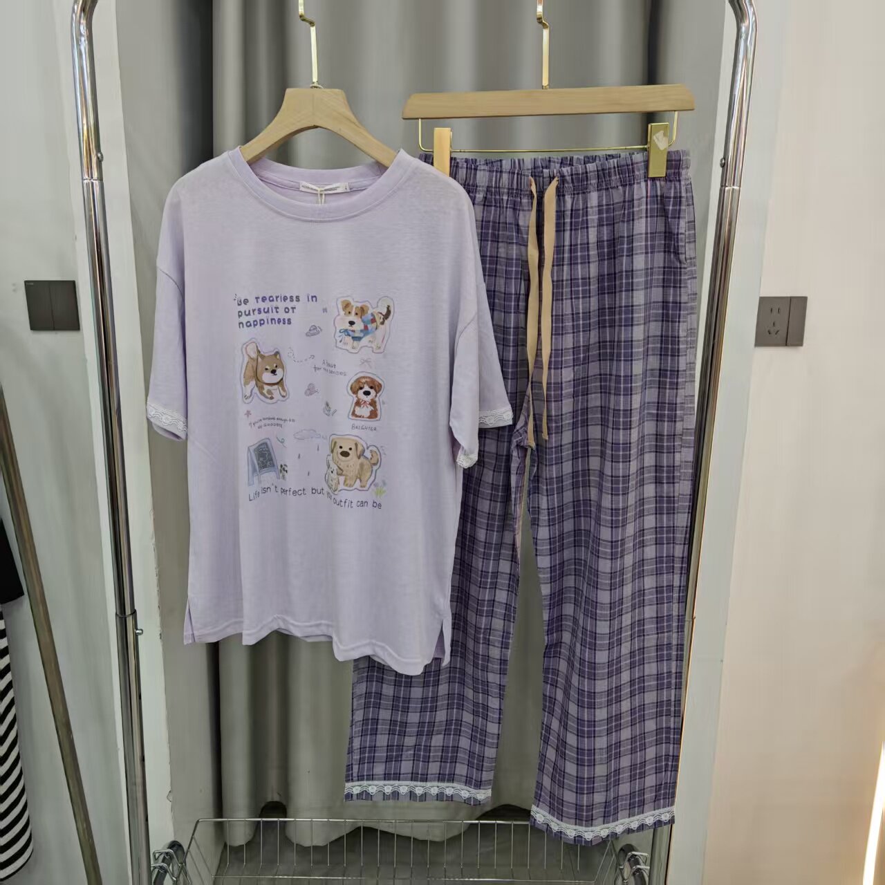 春夏女短袖长裤可外穿睡衣套装