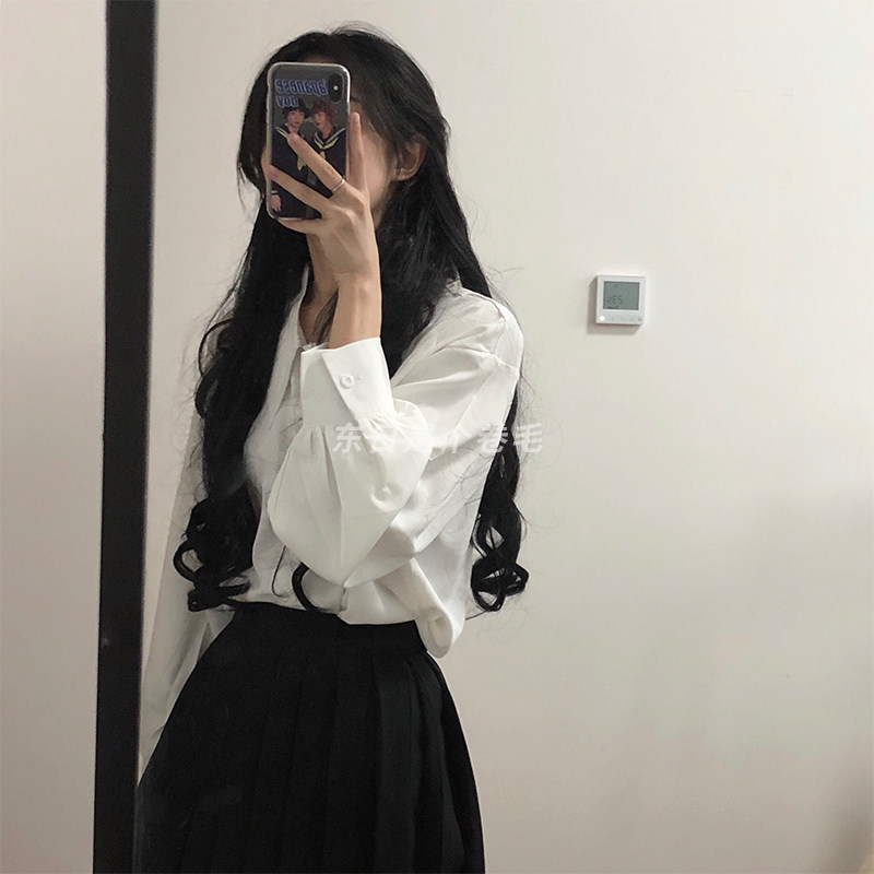 2023年秋季日系学院风上衣百搭白色长袖衬衫女学生宽松蝴蝶结衬衣