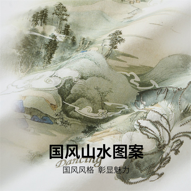 与狼共舞国风山水印花短袖T恤凉