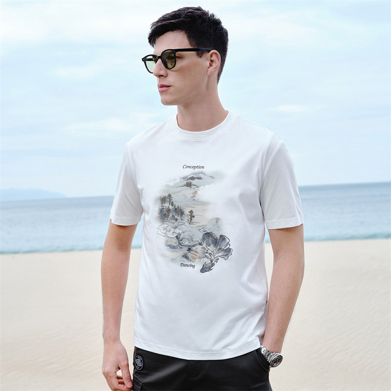 【国风山水印花】与狼共舞圆领短袖T恤男2024夏季新凉感索罗娜短t