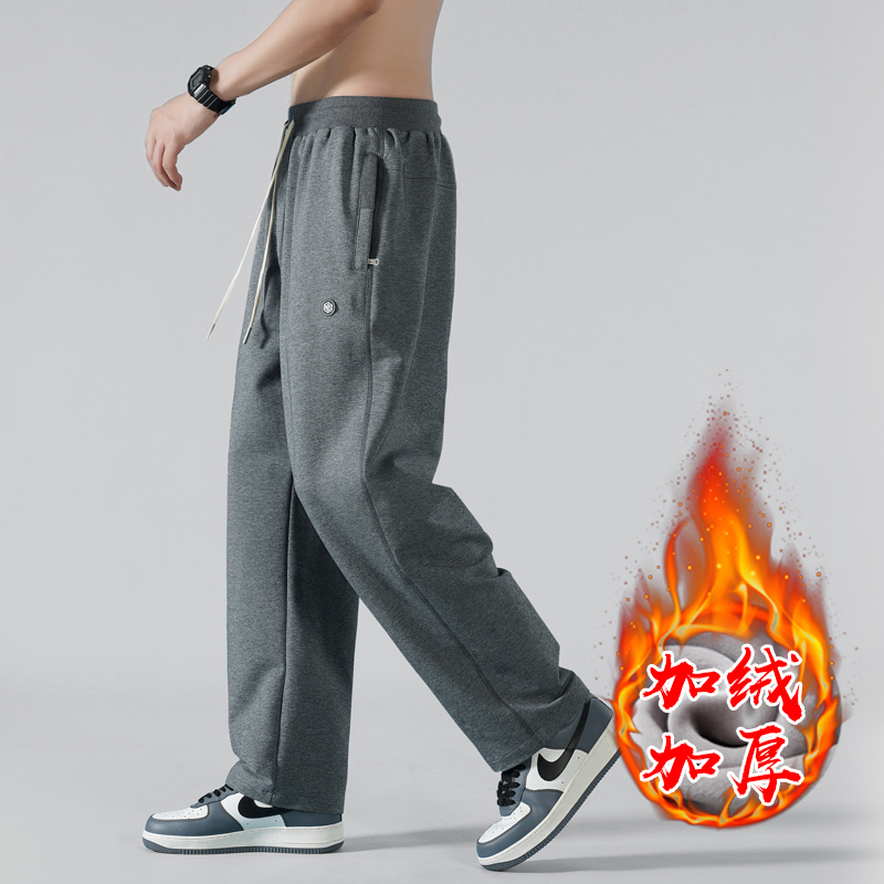 加绒加厚运动裤男秋冬款宽松潮胖针织裤秋冬束脚裤加肥加大码卫裤