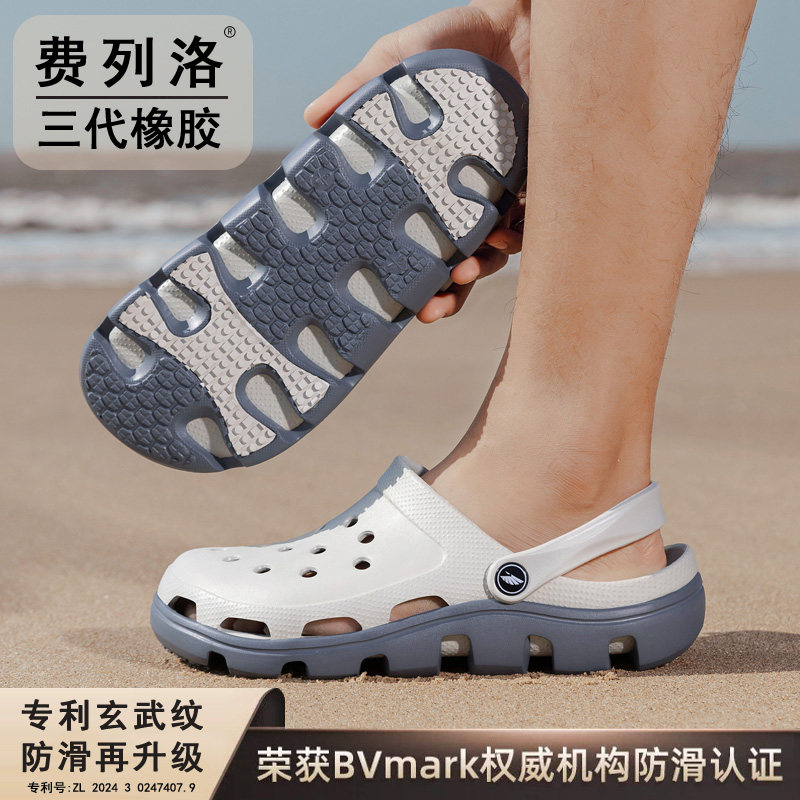 洞洞鞋男士2025夏季橡胶底外穿大码防滑厚底海边包头沙滩拖鞋凉鞋