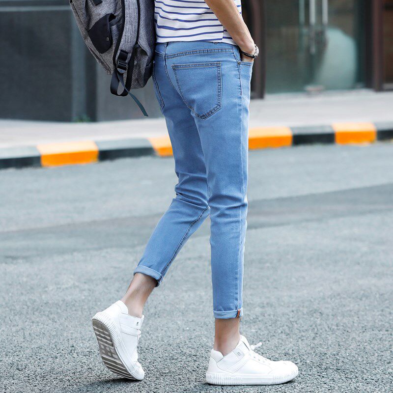 九分牛仔裤男士韩版潮流八分秋季春秋款浅蓝色8分9分男款2024新款