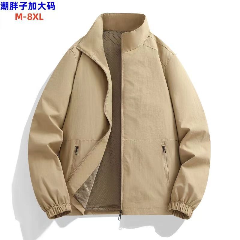大码夹克男装锦纶春秋季加肥加大立领外套运动上衣宽松休闲风衣
