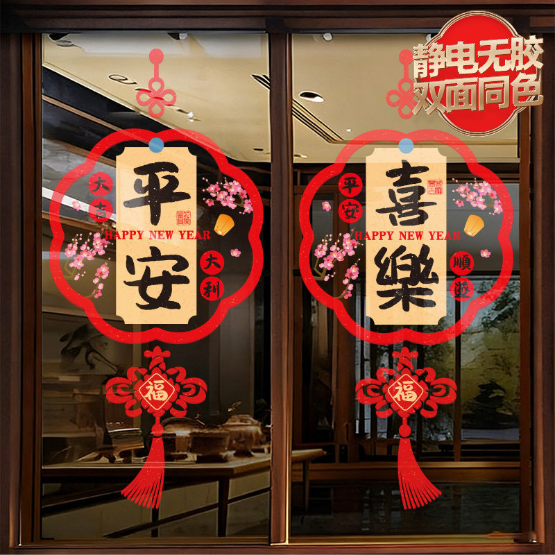 马年新年玻璃门贴纸静电贴2026春节店铺装饰橱窗贴过年布置墙贴画