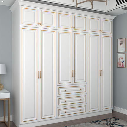 美式实木衣柜现代简约风家用卧室整体大衣橱衣帽间储物柜子可定制
