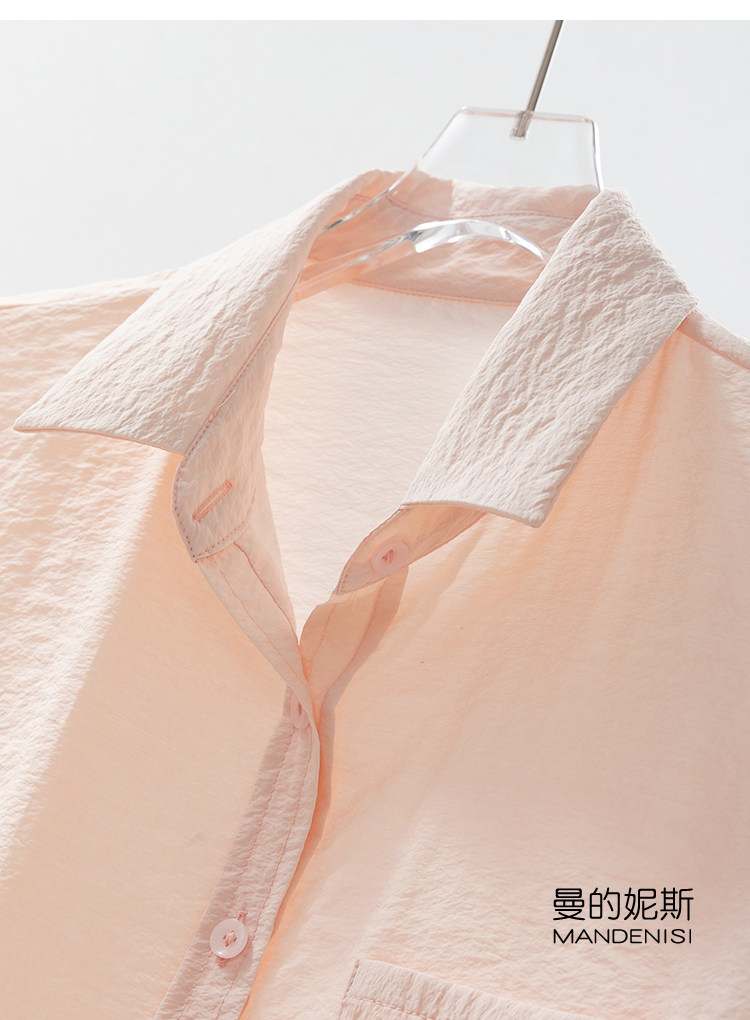 微皱肌理drysilk干丝真丝面料 龟背设计感大码宽松长袖防晒衬衫女