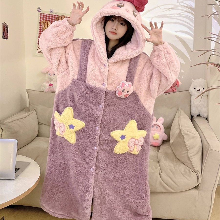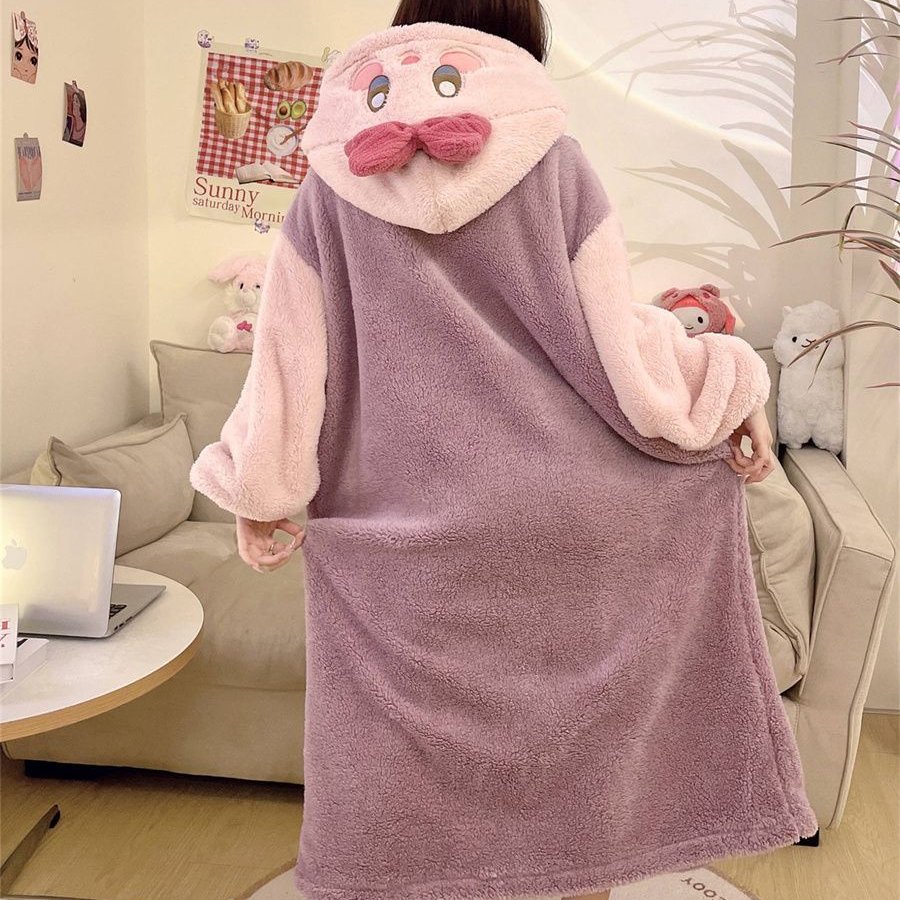 睡衣冬睡袍女秋冬季新款卡通可爱珊瑚绒保暖加绒加厚居家服睡衣