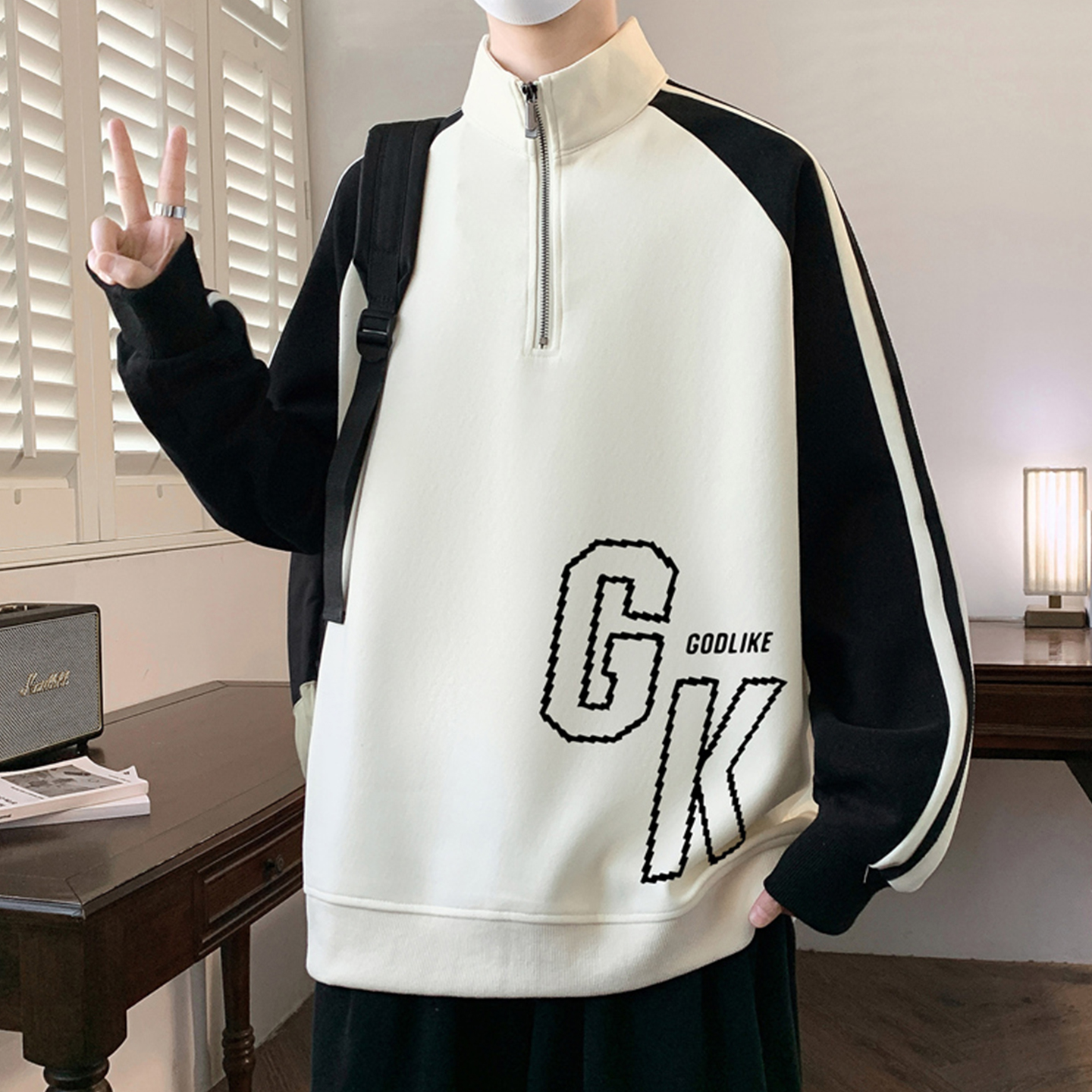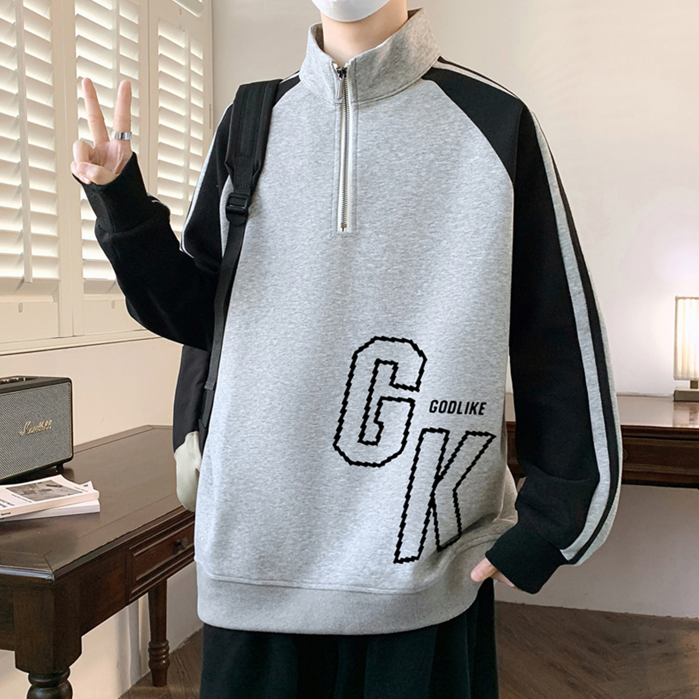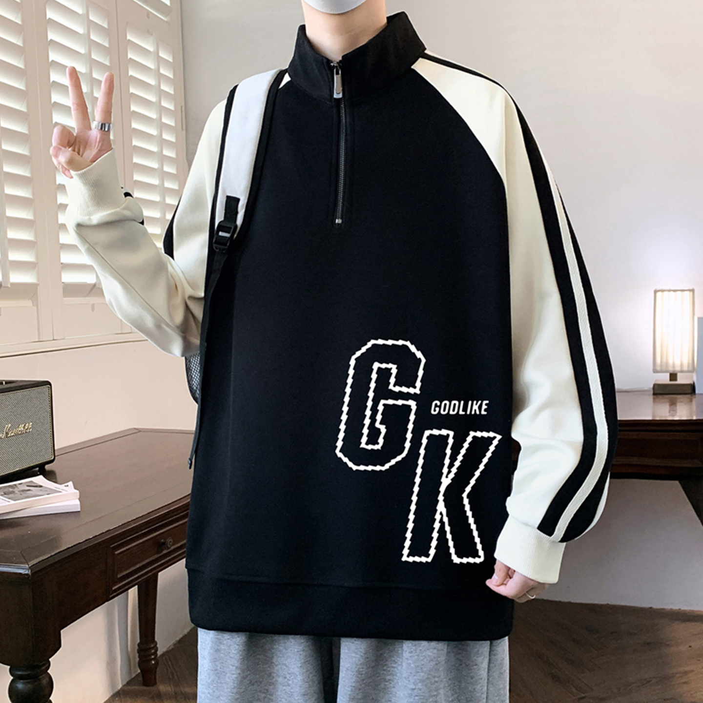 春秋季半拉链立领卫衣男孩初中学生长袖t恤青少年大童潮流上衣服