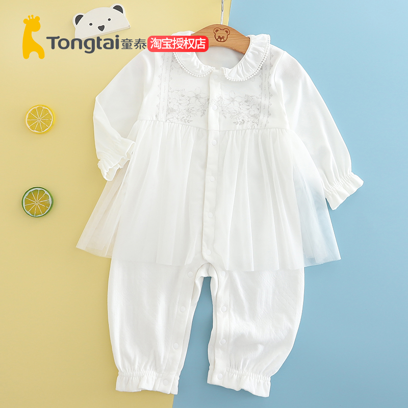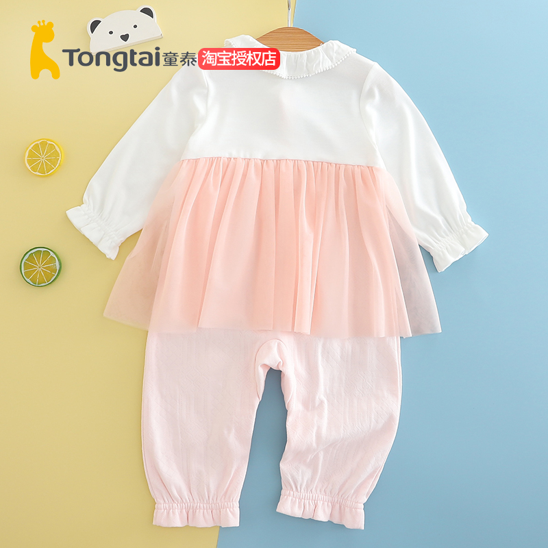 童泰婴儿连体衣春秋款女宝宝公主风哈衣爬服小女婴外出公主小礼服