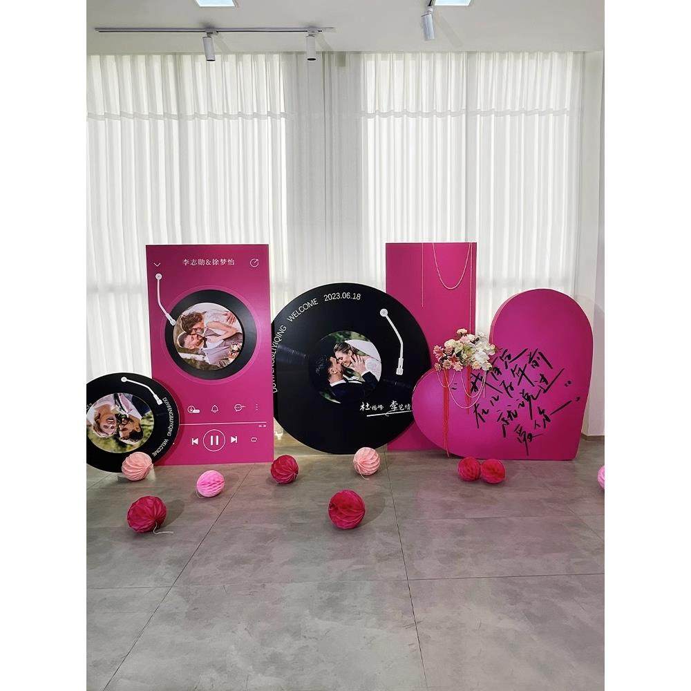 复古唱片机订婚宴布置装饰场景迎宾牌婚礼求婚kt板定制摆件背景墙