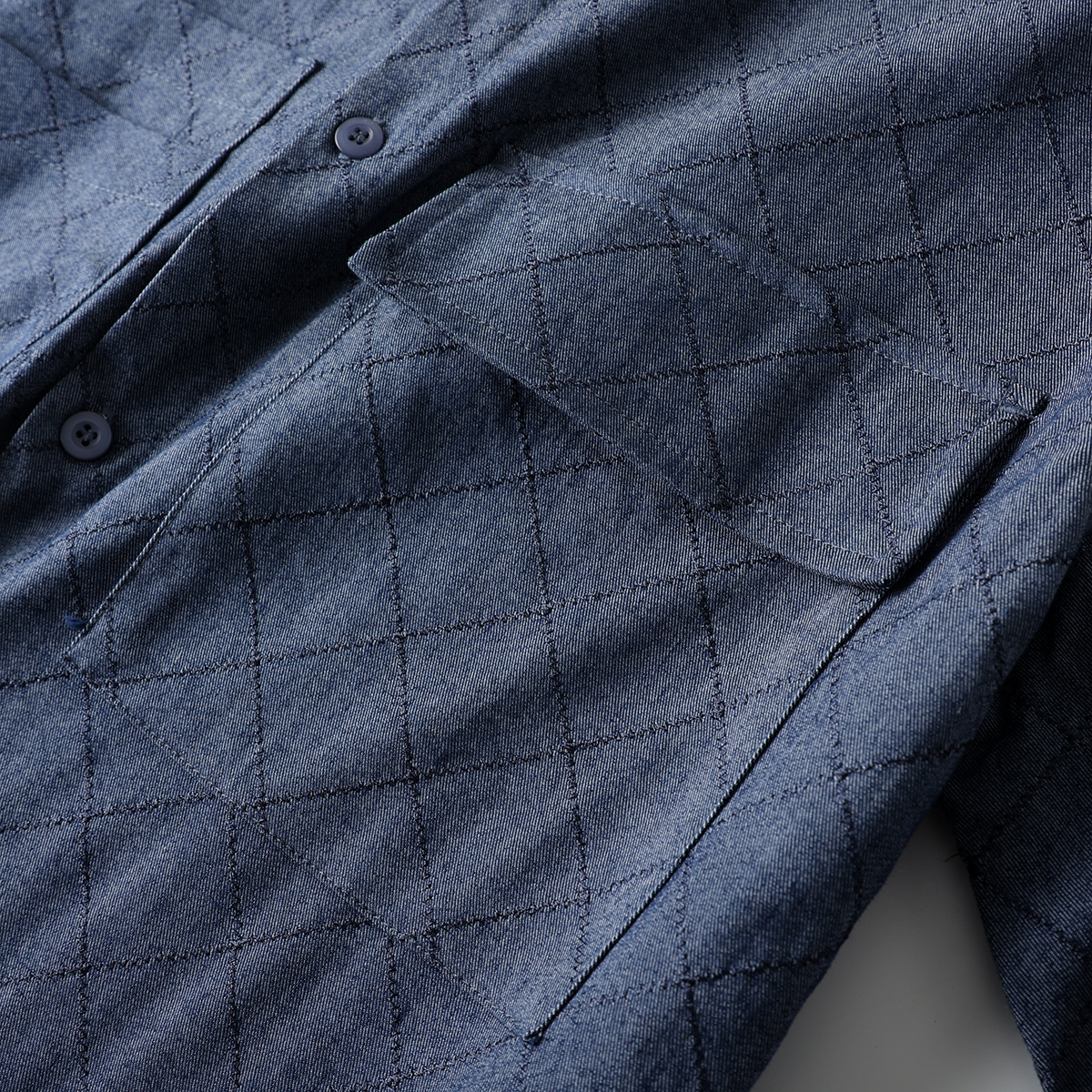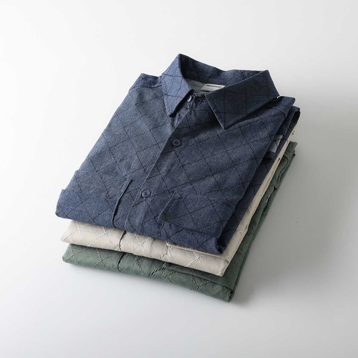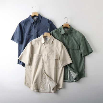 日系复古风!菱格绣花工艺!夏季男士翻领双口袋工装廓型短袖衬衫