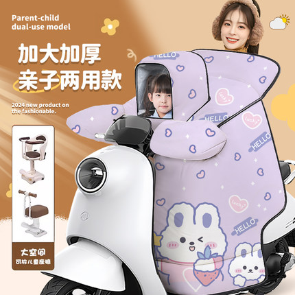 亲子儿童款电动车挡风被冬季加绒加厚电瓶摩托防水防风罩四季通用