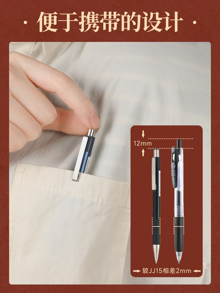 【第一卫】ZEBRA斑马中性笔GJ-301黑色水笔复古办公签字金属笔便便迷你纤细笔杆高颜值低重心按动可换芯0.5mm