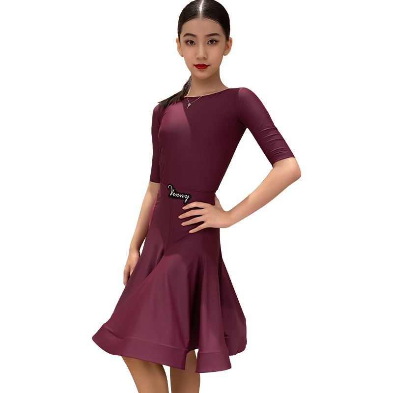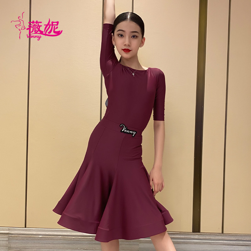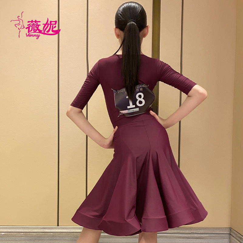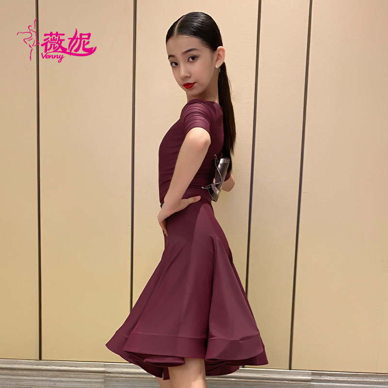 薇妮拉丁舞比赛服专业女儿童鱼骨裙夏季短袖分体规定服女童套装