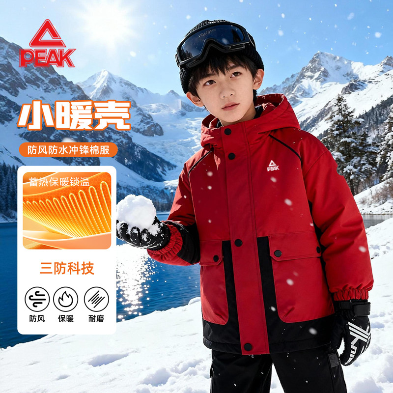 匹克童装男童棉服秋冬新款儿童红色夹棉冲锋衣服男大童贺岁拜年服