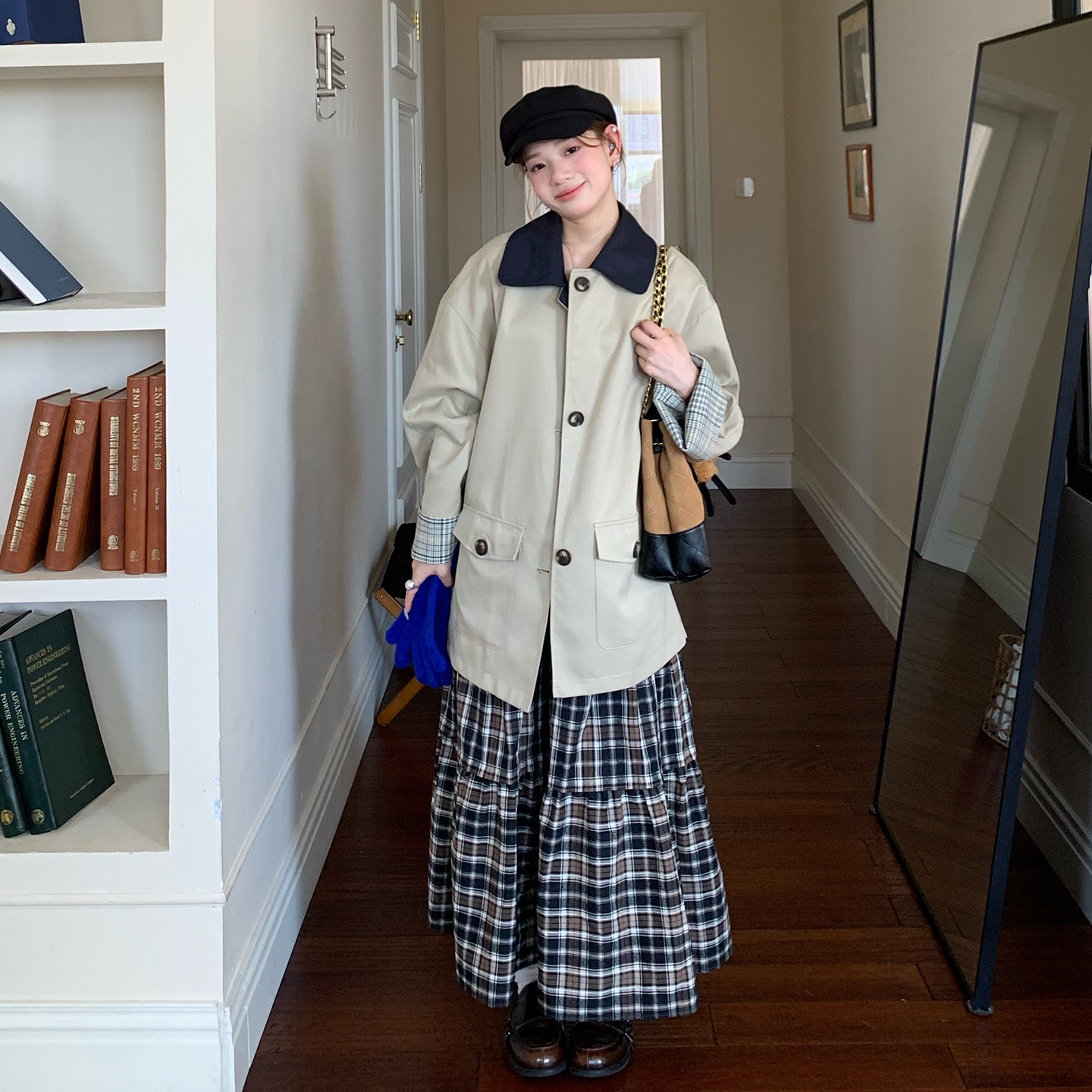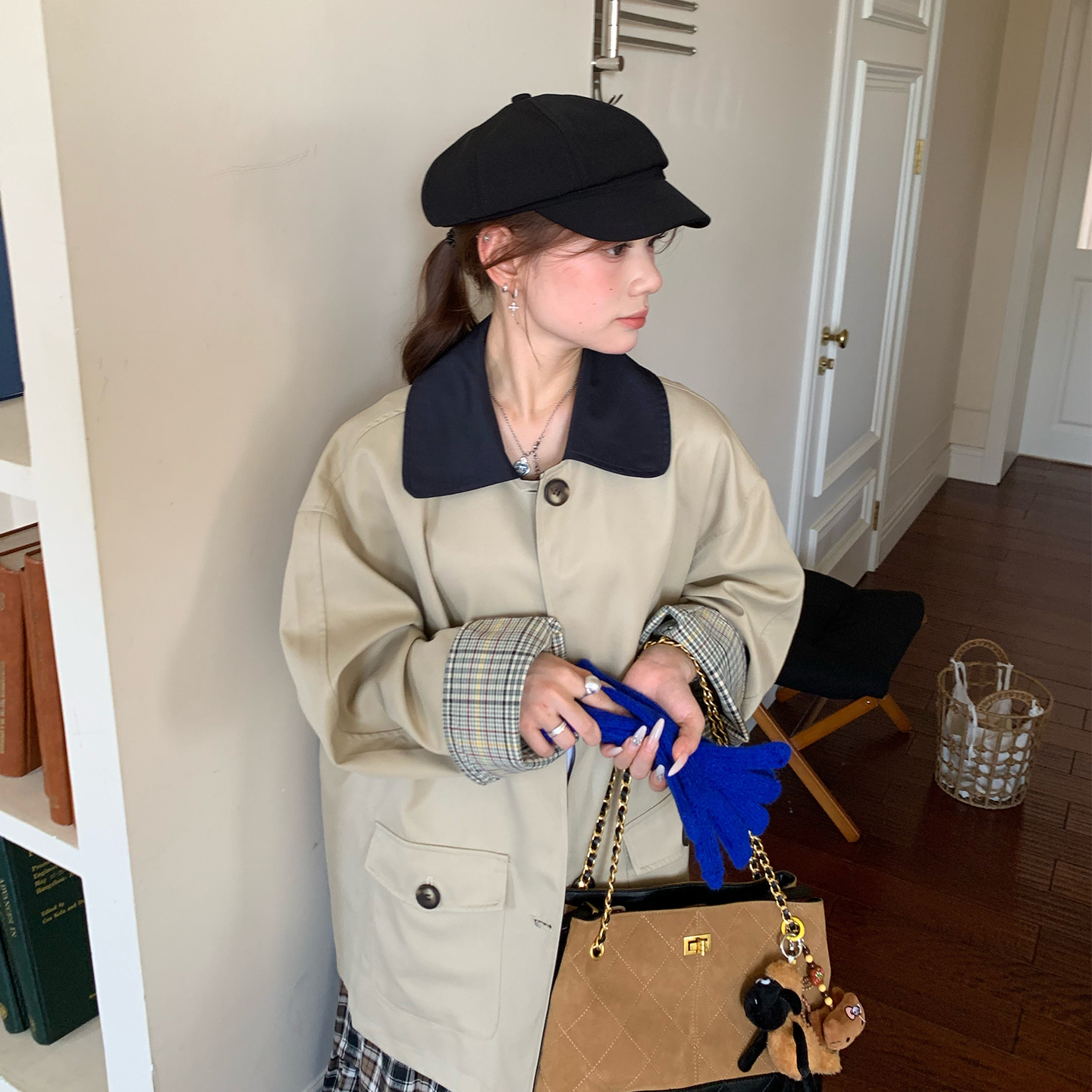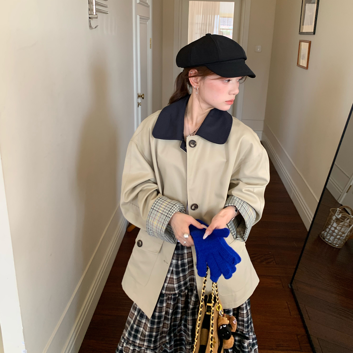 【5折款】橘子树在哪儿韩版撞色风衣外套秋高级感外搭中长款上衣